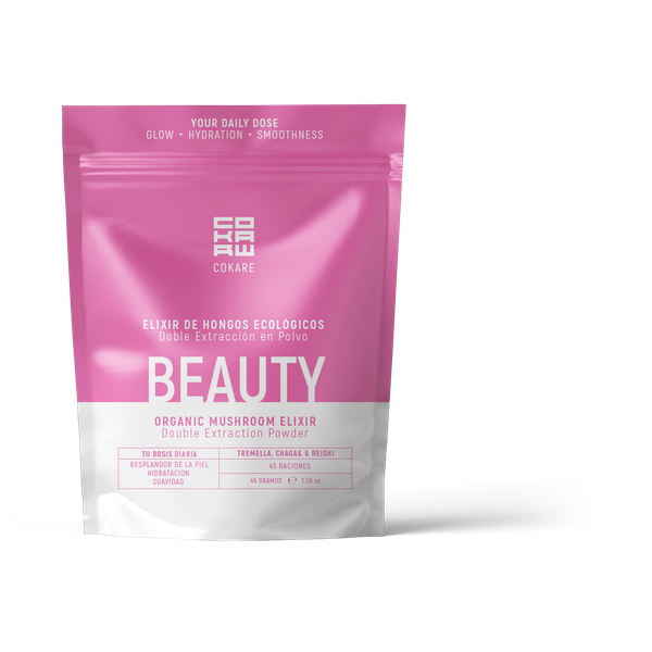 Blend ecológico de Tremella, Chaga y Reishi. >45% beta-glucanos. Diseñado para radiancia, hidratación y suavidad de la piel desde el interior.