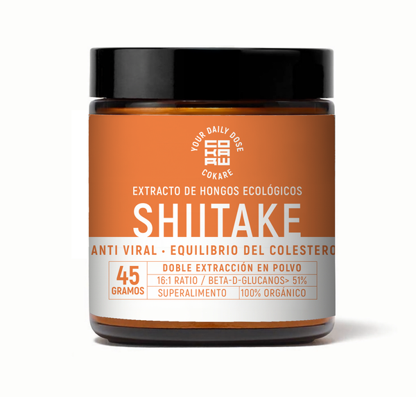 Extracto puro de Shiitake (Lentinula edodes) ecológico con doble extracción. Ratio 10:1, >30% beta-glucanos. Rico en lentinan para apoyo inmunitario.