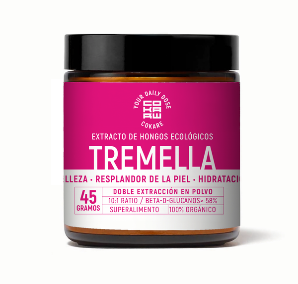 Extracto puro de Tremella (Tremella fuciformis) ecológico con doble extracción. Ratio 10:1, >50% beta-glucanos. Belleza, hidratación y radiancia de la piel.